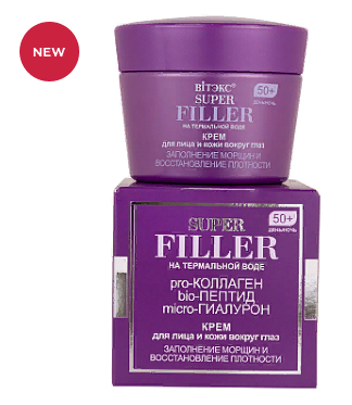 ВИТЭКС SUPER FILLER на термальной воде Крем для лица и кожи вокруг глаз день/ночь 50+ Заполнение морщин и восстановление плотности, 45мл