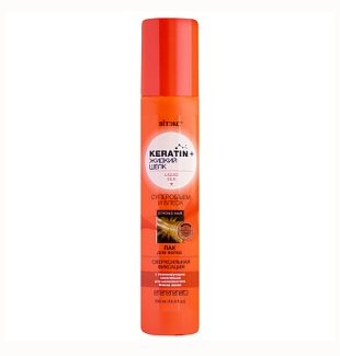 ВИТЭКС KERATIN & ЖИДКИЙ ШЕЛК Лак для волос СУПЕРОБЪЕМ и БЛЕСК Сверхсильная фиксация 215мл