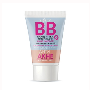 ВВ Крем для лица Матирующий Акне фильтр тон УНИВЕРСАЛЬНЫЙ, 30мл БЕЛИТА АНТИ АКНЕ Азелаин+Цинк ee ээ